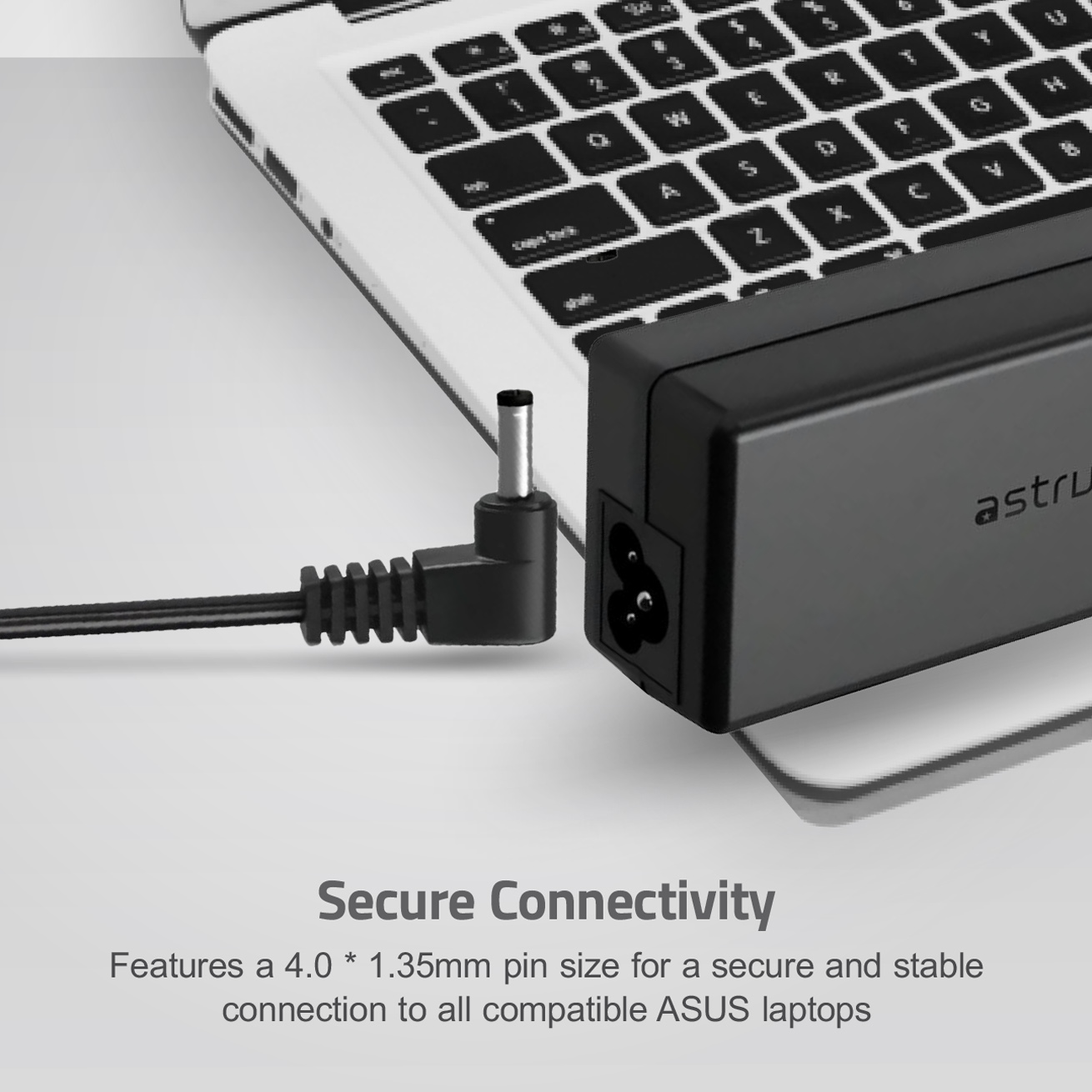 Features a 4.0 * 1.35mm pin size for a secure and stable connection to compatible ASUS laptops.