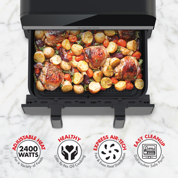 - Large 10.3L (2.7kgs) non-stick MODI-FRY drawer with Removable Divider & Fry Tray for 3 versatile cooking zones