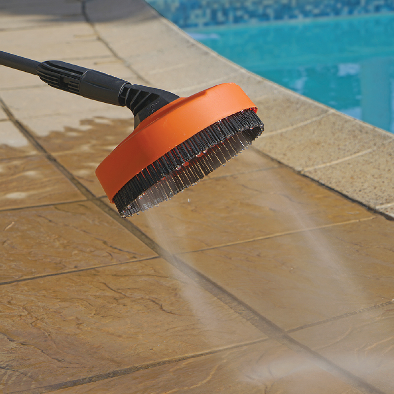 The powerful, versatile, Tri-Tech cleaning brush that is perfect for all-round use! Just attach the Bennett Read Patio Brush 360 to your high-pressure cleaner & easily remove stubborn dirt & grime in seconds! With its 360° rotating arm, 2x potent high-pressure water jets & heavy-duty sweeping bristles that give you more cleaning power than a manual broom or even a normal pressure washer cleaning lance. The Bennett Read Patio Brush 360 is ideal for all-round home use including patios, driveways, walls, paved walkways, outdoor tiled areas, pool paving, garage doors, stairs & more.