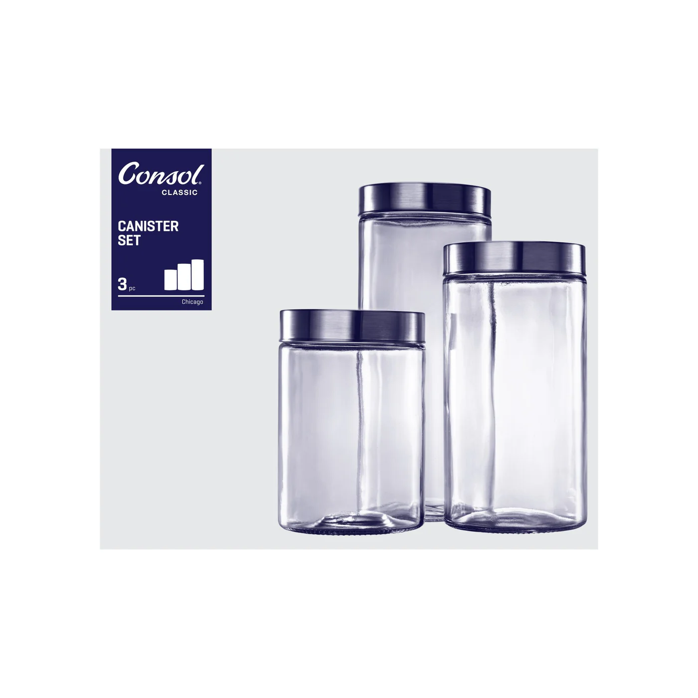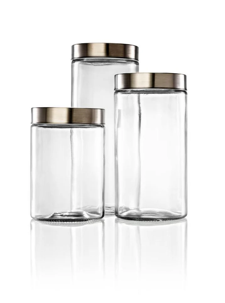 Organise your kitchen and pantry, while adding a modern touch to it. The 3 piece Chicago canister set is ideal to store pasta, tea, coffee, sugar and so much more. It is available in 3 different sizes: 1.3l, 1.8l and 2.3l all with stainless steel lids. Dishwasher safe, Glass 100% recyclable, Not microwave/freezer safe, Avoid cleaning with abrasives, May crack if exposed to extreme heat/cold.