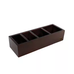 A medium mahogany tea caddy, ideal for the hospitality industry. This tea caddy features four separate compartments to house your tea, coffee, milk sachets and rusks.