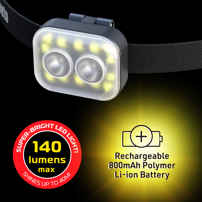 The ultimate, hands-free lighting utility. A powerful, hands-free lighting solution designed to deliver exceptional performance in any situation. Emits up to 140 lumens of bright light and shining as far as 40 meters, this headlamp is ideal for outdoor adventures or indoor emergencies. It features six versatile modes: Ultra Bright Cool White, Ultra Bright Warm White, Power Saver Cool White, Power Saver Warm White, Floodlight Wide Flood, and a Red LED mode, which is perfect for nighttime use without attracting insects. Whether you’re camping, hiking, dealing with a power outage, or handling low-light DIY tasks, the Magneto® Pathfinder ensures you have bright, dependable illumination wherever you go. Intelligent & efficient design. Engineered for convenience, the Magneto® Pathfinder Rechargeable LED Headlamp features a smart memory mode that recalls your last brightness setting, so you can pick up right where you left off. Powered by an 800mAh rechargeable Polymer Li-ion battery, it delivers up to 10 hours of continuous use on a single charge—perfect for extended tasks or overnight adventures. Whether you’re out in the wild or facing an unexpected power cut, the Pathfinder provides efficient, hands-free lighting exactly when and where you need it. Easy usb-c charging on the go. Charging is made easy with the included USB-C cable, allowing you to power up the headlamp quickly and efficiently. Whether you’re preparing for an outdoor adventure, tackling home repairs in low-light conditions, or dealing with an unexpected power outage, the Magneto® Pathfinder is the ideal companion