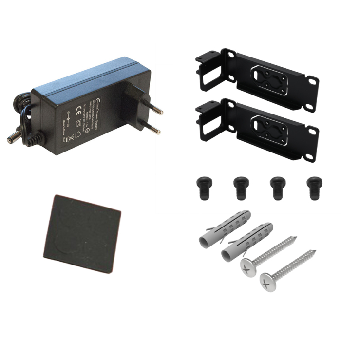 MikroTik’s RB-L009UGSRM features a powerful dual-core ARM CPU, 8x Gigabit Ethernet Ports, 1x SFP port supporting both 1.25Gbps and 2.5Gbps as well as a full-sized USB 3.0 port. The unit can be powered by either the included power supply or 24-56V PoE on Port 1. It also features PoE out on port 8 when powered by the DC Jack and ships with a RB-5009RMKIT rack-mount kit.