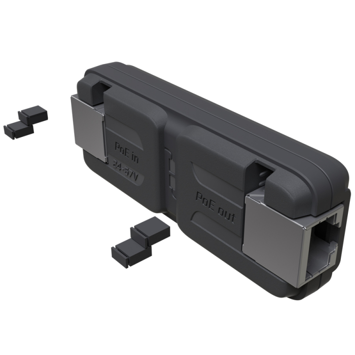 NOTE: Jumper usage – If the destination device does not support PoE powering, the power passthrough can be disabled manually by removing both jumpers on the “PoE out” side. This will only work if “PoE in” is served by passive PoE source, as 802.3af/at switches will not be able to power the GPeR itself.