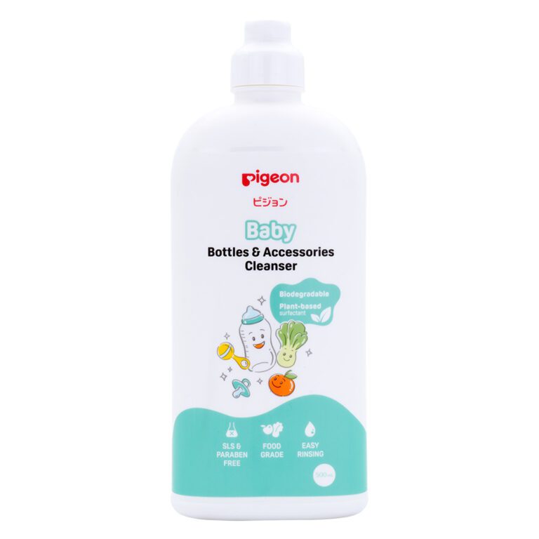 The Pigeon Liquid Cleanser is made from 100% Food Grade Ingredients. Removes the toughest formula & food stains. For cleaning baby’s accessories, including food. Anti-Bacterial. Paraben Free. Dermatologically Tested