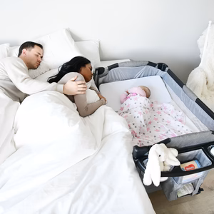 Drop down side with easy access to respond to baby’s needs when co-sleeping