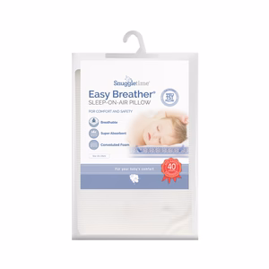 he Snuggletime Sleep-On-Air Pillow elevates baby’s head on spongy layer of air.