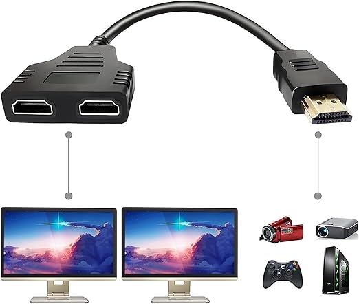 This UniQue HDMI Male to Dual HDMI Female splitter allows you to send one HDMI signal to two screens simultaneously. It supports 1080p resolution and 3D video for high-quality broadcasting. Compatible with most HDMI devices, including TVs, monitors, and gaming consoles, it offers durable construction for reliable use.